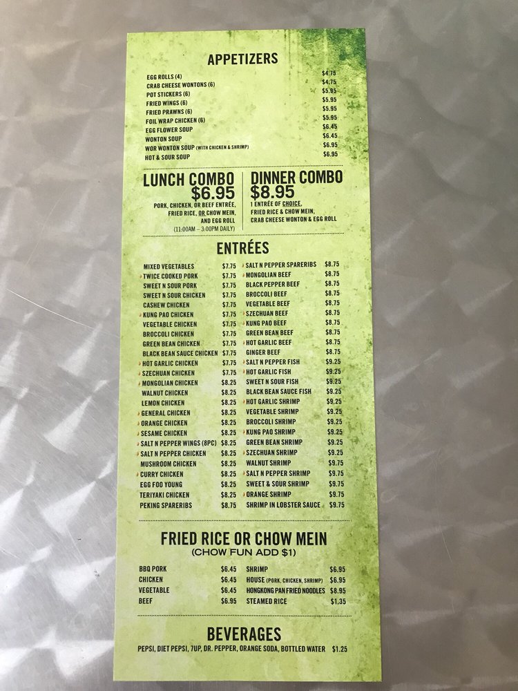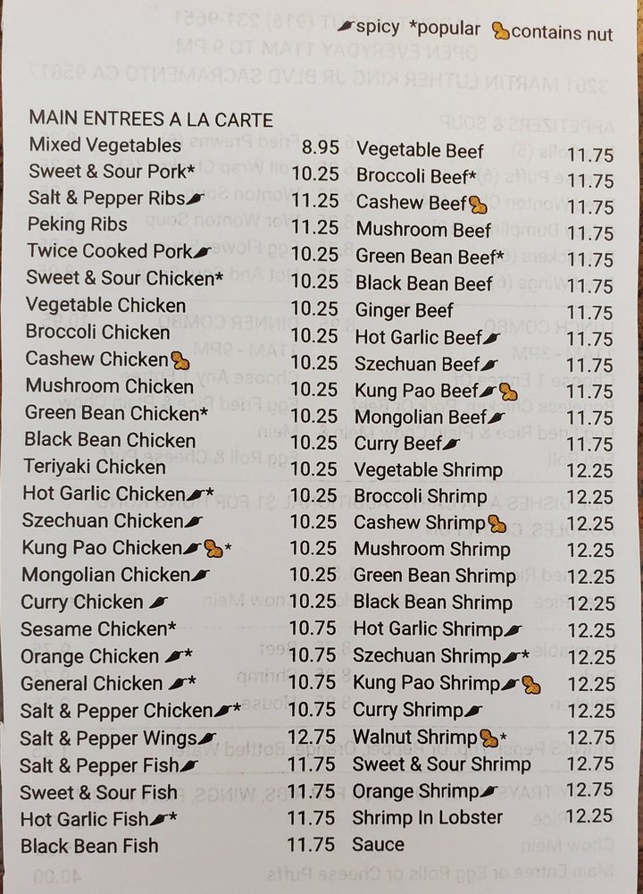 Please note chicken, pork, beef, shrimp, house, or mixed vegetables